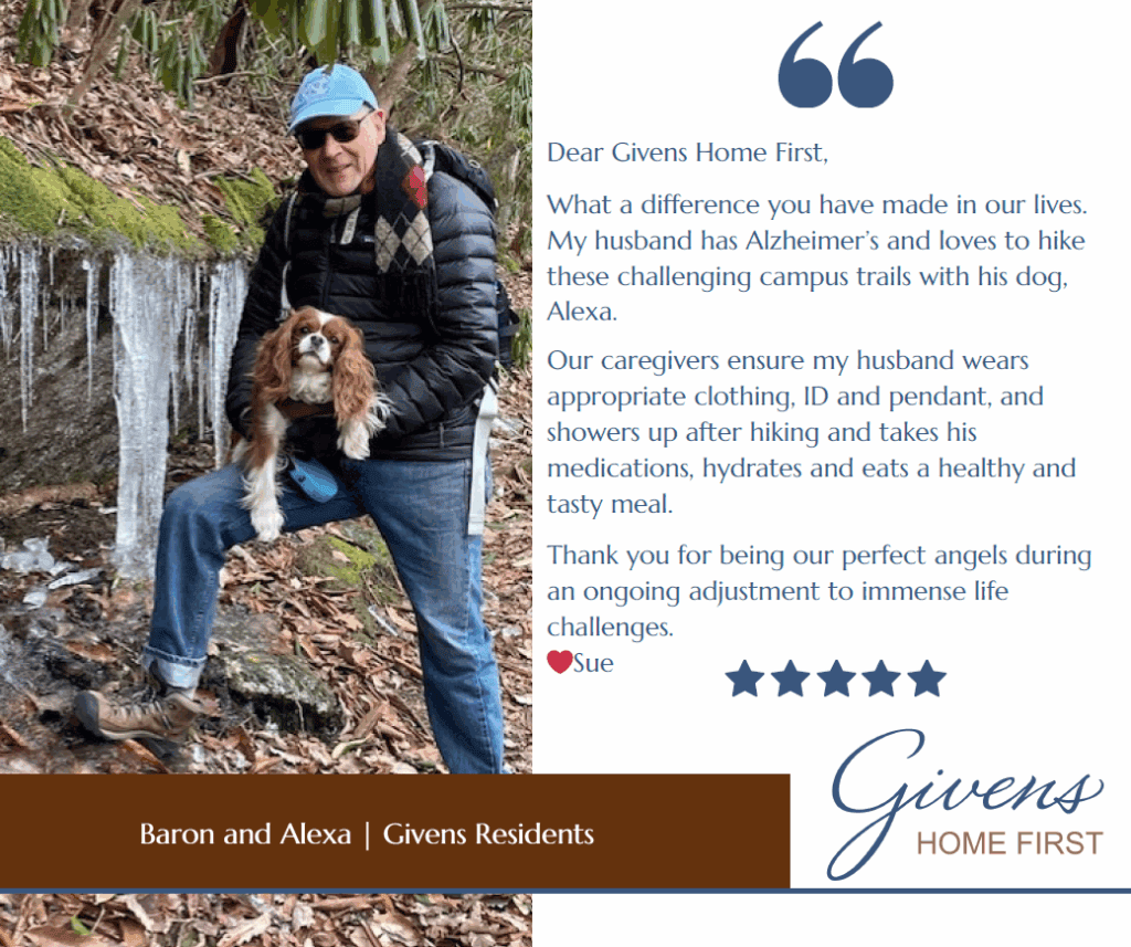 At Givens Home First, we’re reminded every day that care is about so much more than tasks—it’s about helping people keep doing what they love. Sue’s husband, Baron, lives with Alzheimer’s, but that hasn’t stopped him from enjoying the challenging campus trails with his loyal dog, Alexa. Thanks to our caregivers, he can continue this […]