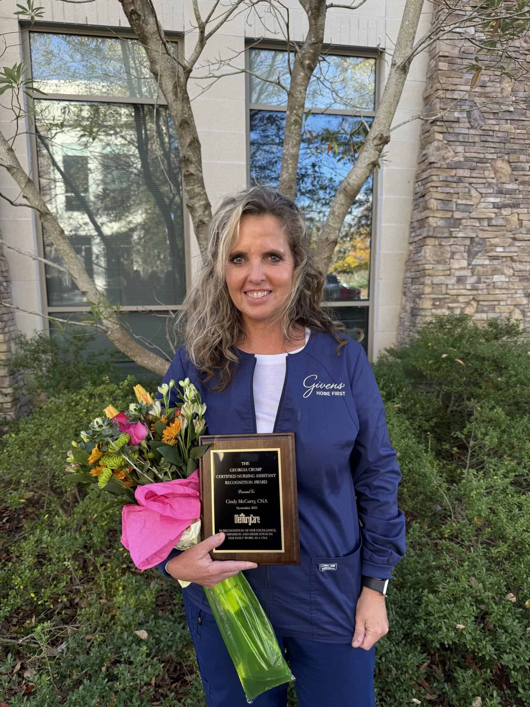 We are thrilled to share that Cindy McCurry, one of our extraordinary Certified Nursing Assistants at Givens Home First, has been named the 2025 recipient of the Georgia Crump Certified Nursing Assistant Recognition Award from MemoryCare. Cindy was honored during a beautiful celebration on November 5th, surrounded by her family, colleagues, and community partners.